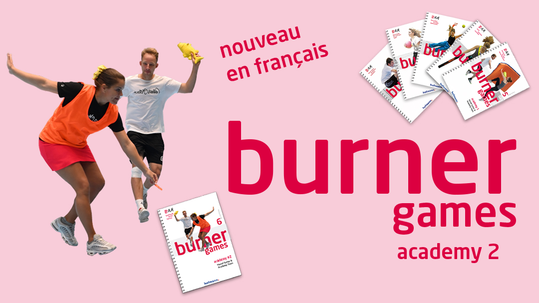 Le monde des jeux est aussi infini que l’imagination de leurs créateurs. De savoir que de nouvelles idées peuvent sans cesse émerger d’une seule tête est tout aussi fascinant que de constater de quelle manière les projets créatifs de plusieurs têtes peuvent se développer en une mine d’or inépuisable au sein d’une équipe ambitieuse. La « Burner Games Academy » est non seulement un projet collectif d’étudiants des universités de Bâle et de Berne, encadrés par Muriel Sutter, mais aussi le début d’une nouvelle ère : les jeux présentés dans le nouveau manuel sortent de l’imagination débridée d’une jeune génération de maîtres d’éducation physique qui conçoivent et développent, en tant que culture complémentaire du jeu, des « Burner Games » compétitifs, mais aussi très intégratifs.